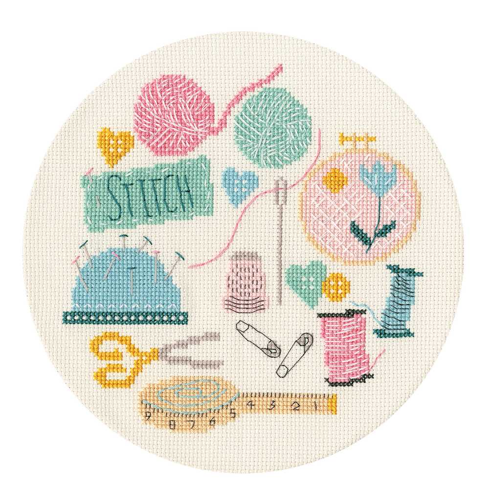 This counted cross stitch kit contains; 14 count cream Zweigart Aida, pre-sorted stranded cottons, needle, stitch diagram and instructions. The finished design size is 17.5cm round to fit within an 8 inch wooden hoop. This kit uses full cross stitches and back stitch. This kit is part of our new Sew Easy range aimed at introducing beginners to cross stitch and back stitch. HOOP NOT INCLUDED