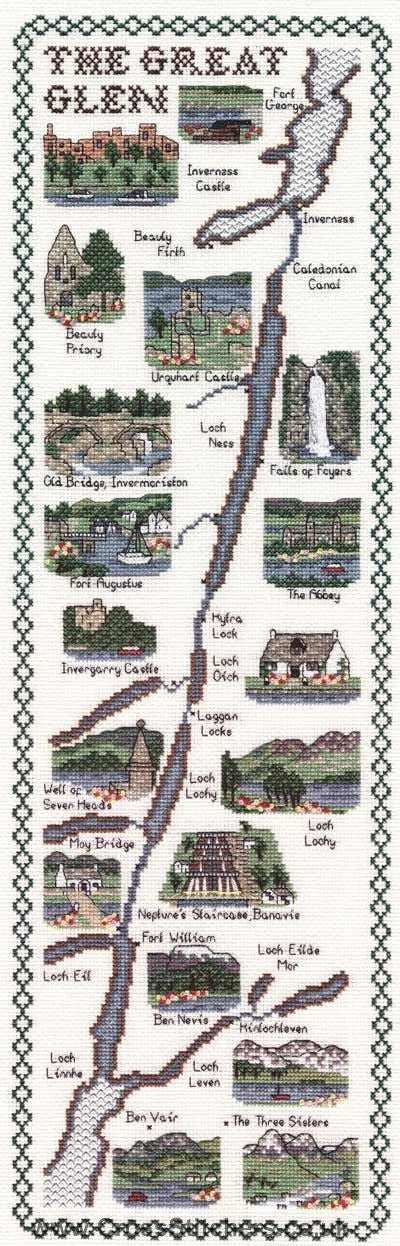 The Great Glen Map Cross Stitch Kit - Classic Embroidery