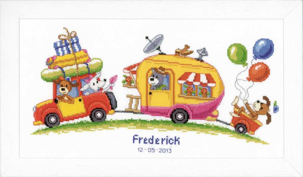 Vervaco Cross Stitch Kit - Caravan Trip Birth Sampler