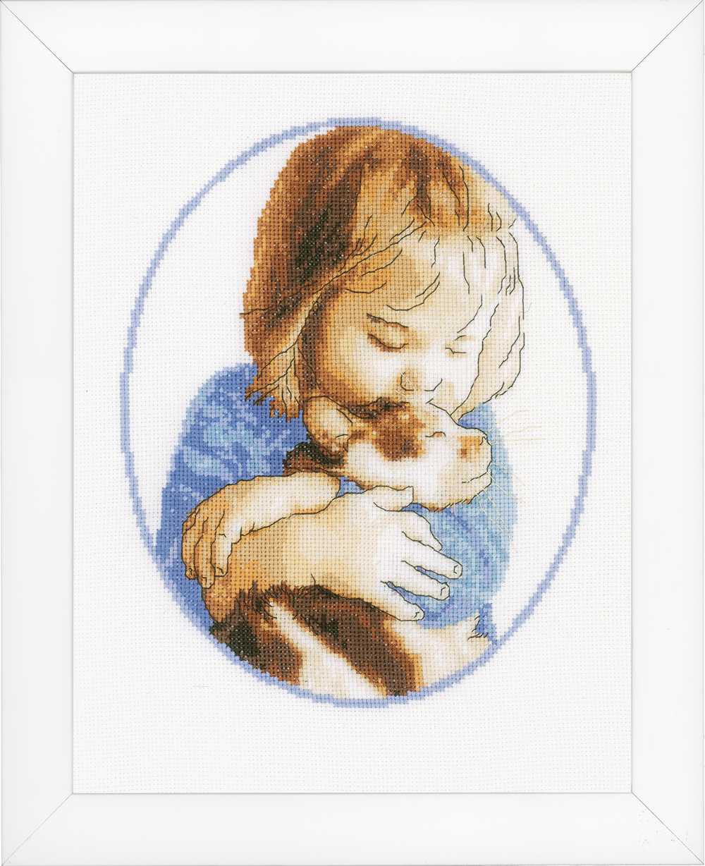 Kit includes: 14 count, white, cotton, aida fabric; pre-sorted, stranded cotton threads; needle; large-square charted design; front sheet picture and instructions in eight languages (EN, NL, FR, GER, IT, SP, RU, SW). Size: (w/h) 21 x 26cm or 8.4 x 10.4in