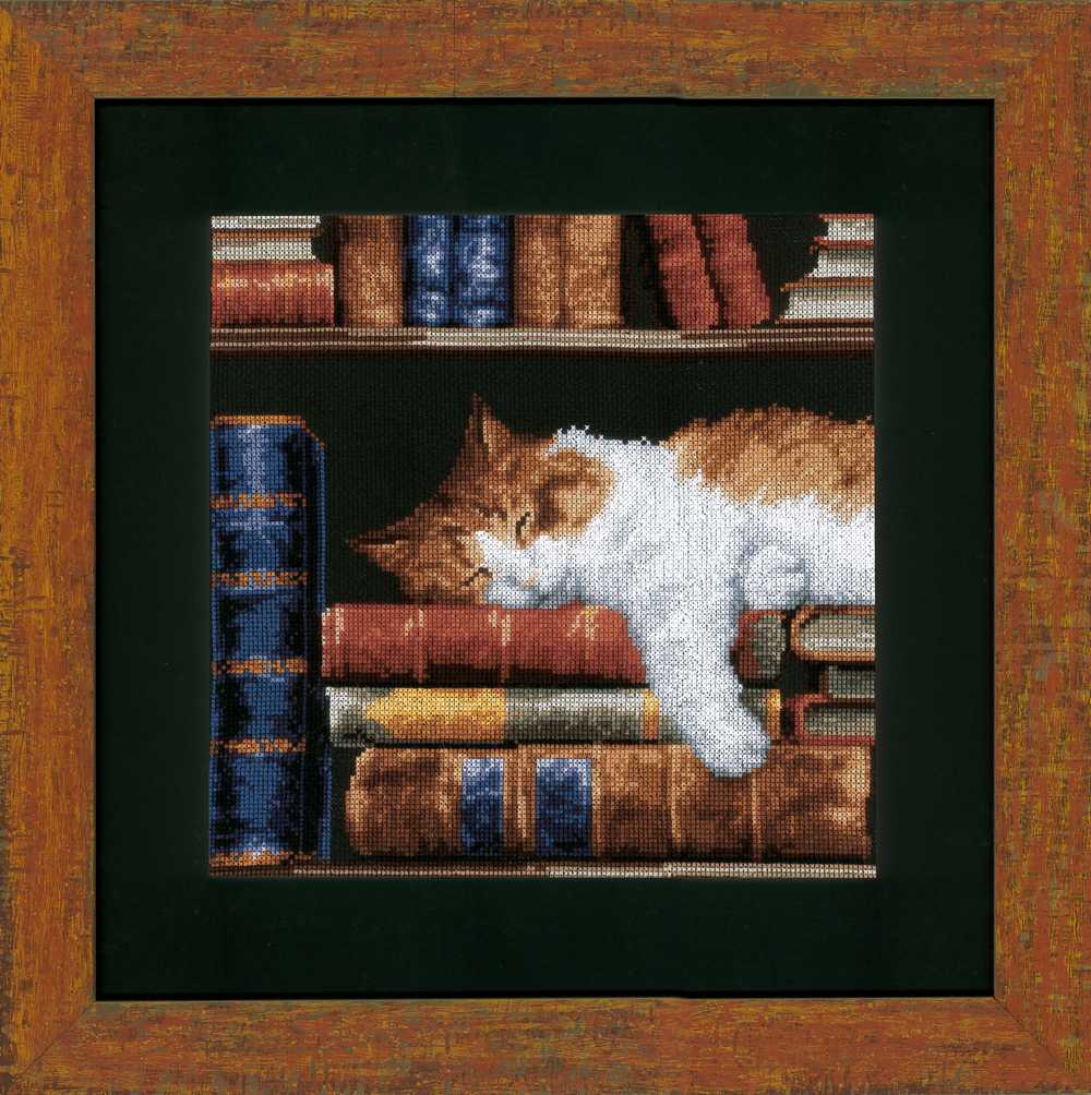 Vervaco Cross Stitch Kit - Cat Sleeping on Bookshelf