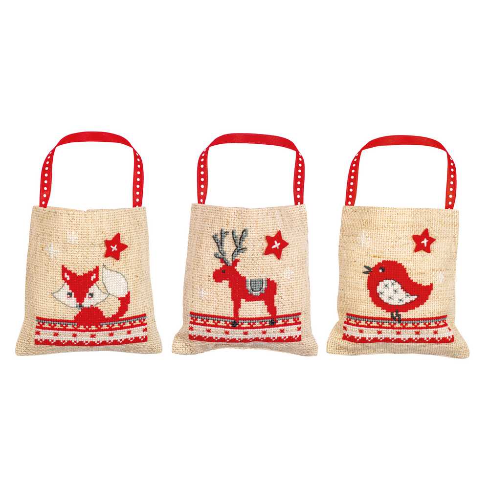 Vervaco Cross Stitch Kit - Christmas Animals Pot Pourri/Gift Bags