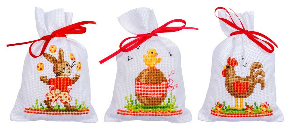 Vervaco Cross Stitch Kit - Easter Animals Gift Bags Set of 3