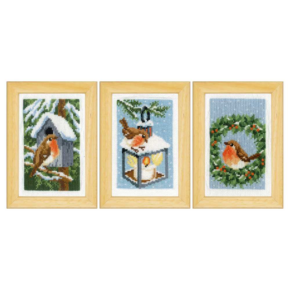 Vervaco Cross Stitch Kit - Set 3 Minatures Robins in Winter