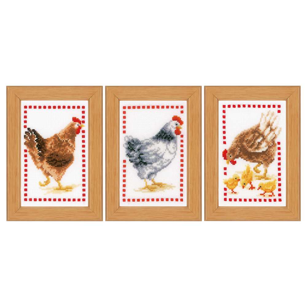 Vervaco Cross Stitch Kit - Set 3 Miniatures Chickens