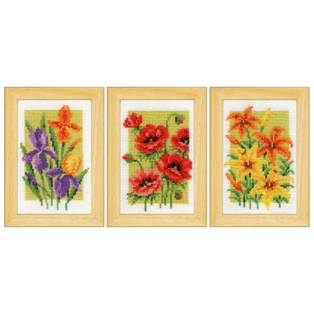 Vervaco Cross Stitch Kit - Set 3 Miniatures Summer Flowers