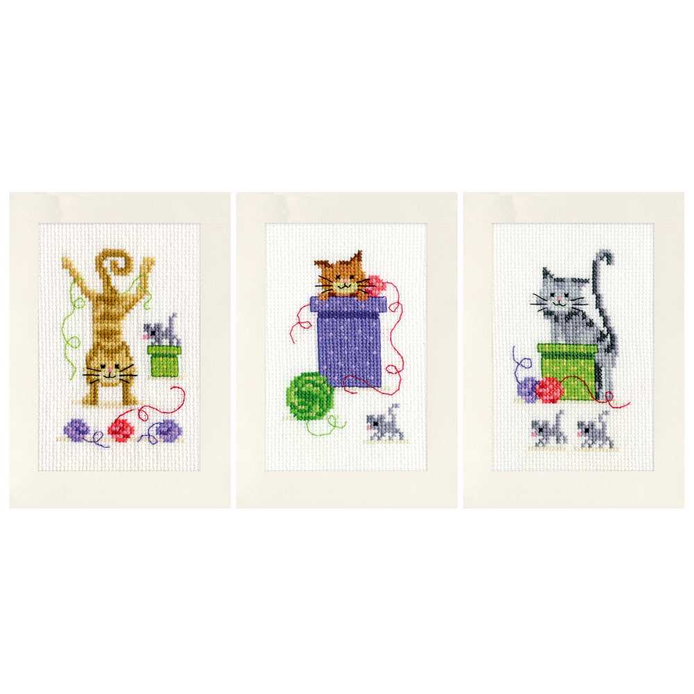 Vervaco Cross Stitch Kit - Set of 3 Playful Cats Greetings Cards