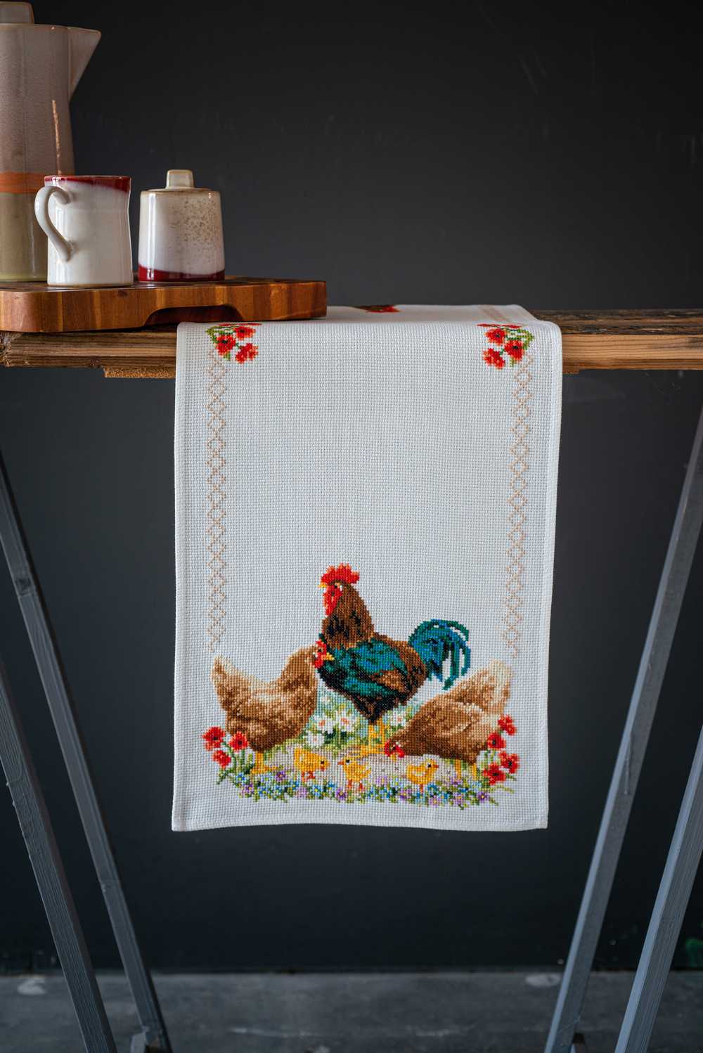 Vervaco Cross Stitch Table Runner Kit - Rooster and Chickens