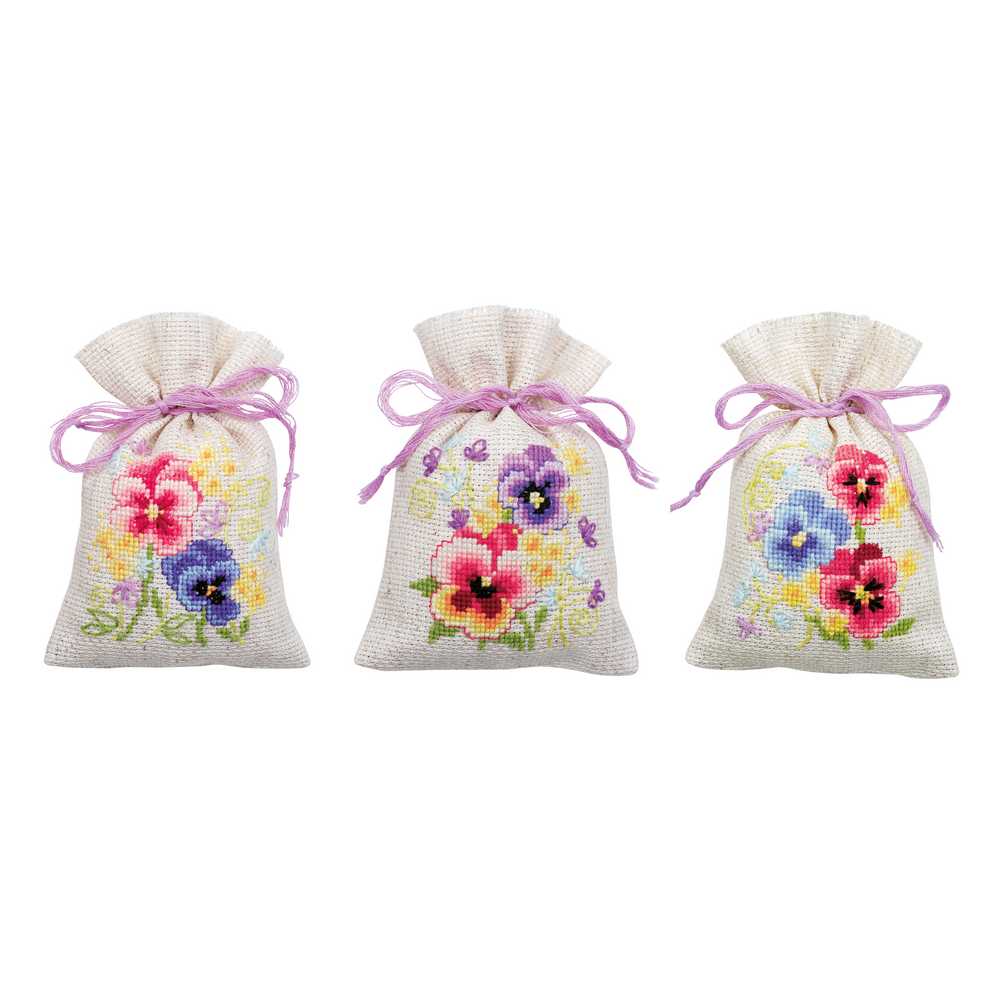 Violets Set of 3 Pot-Pourri Bag Cross Stitch Kit Vervaco
