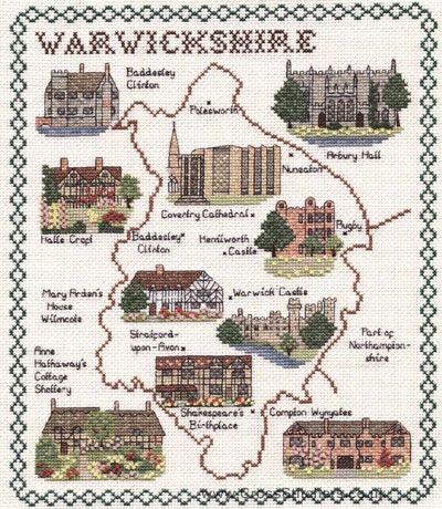 Warwickshire Map Cross Stitch Kit from Classic Embroidery.