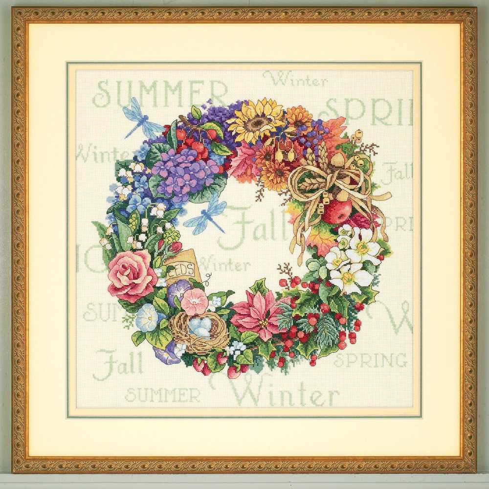 Wreath of all Seasons Cross Stitch Kit - Dimensions Gold